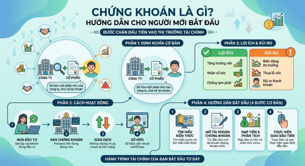 Chứng khoán là một loại tài sản tài chính đại diện cho quyền sở hữu (cổ phiếu) hoặc khoản nợ (trái phiếu) của doanh nghiệp hoặc tổ chức phát hành.
